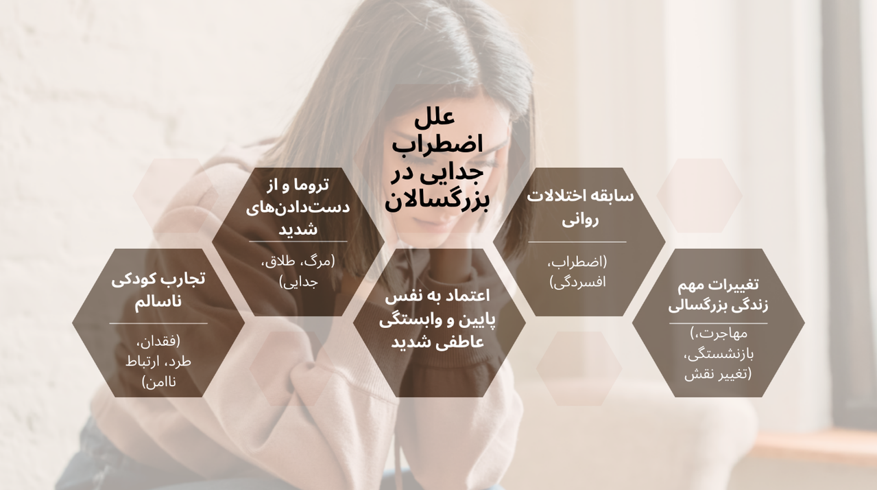 مرگ، طلاق، جدایی یا تغییرات ناگهانی در زندگی بزرگسالان میتواند منجر به اضطراب شدید از از دست دادن امنیت و وابستگیهای عاطفی شود.